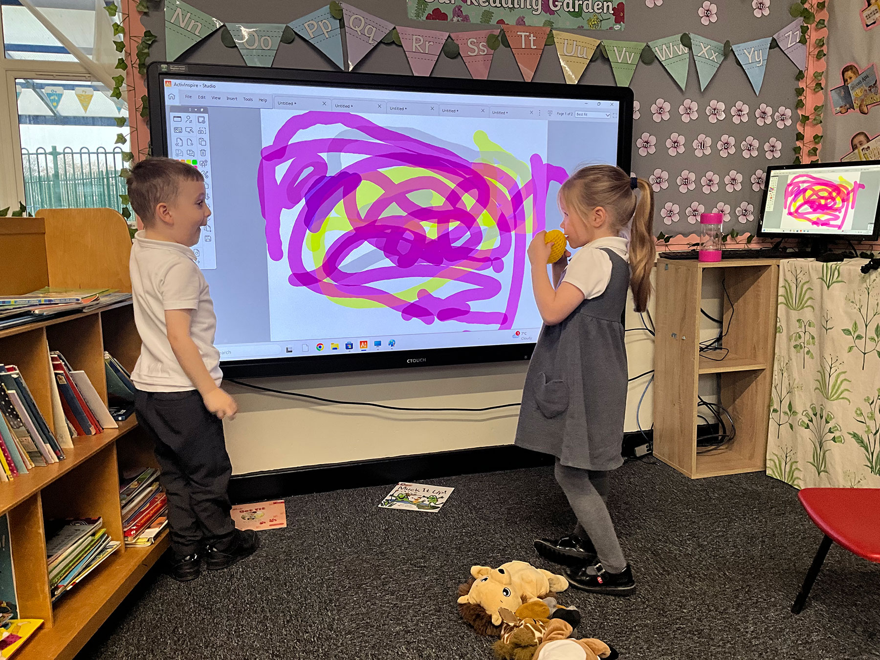 In other areas of learning the children developed their performing skills through singing songs and watching their performances back.