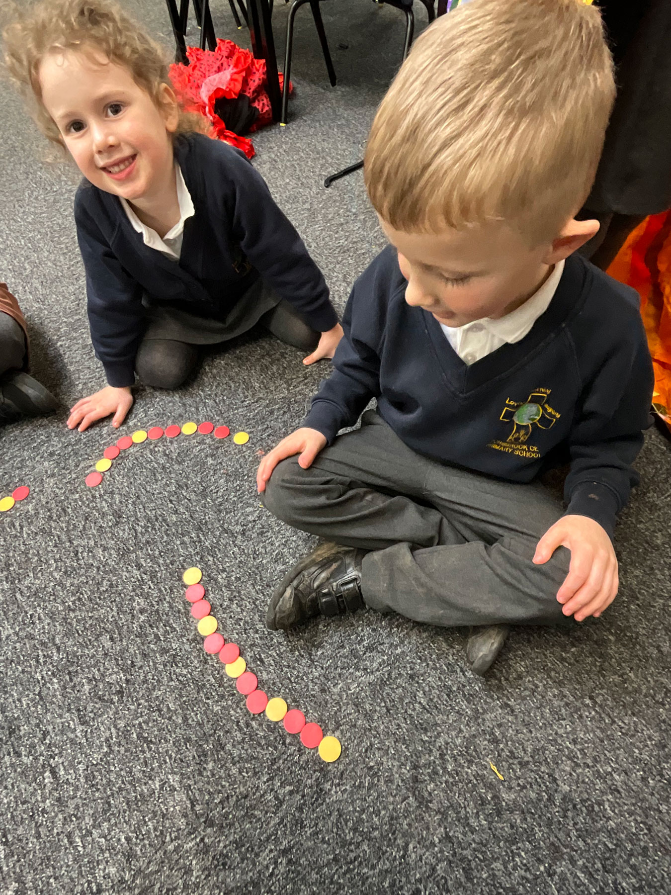 In Maths, the children explored the wider mathematical world of AB and ABB patterns and explored their number knowledge of the ‘5 and a bit’ concept.