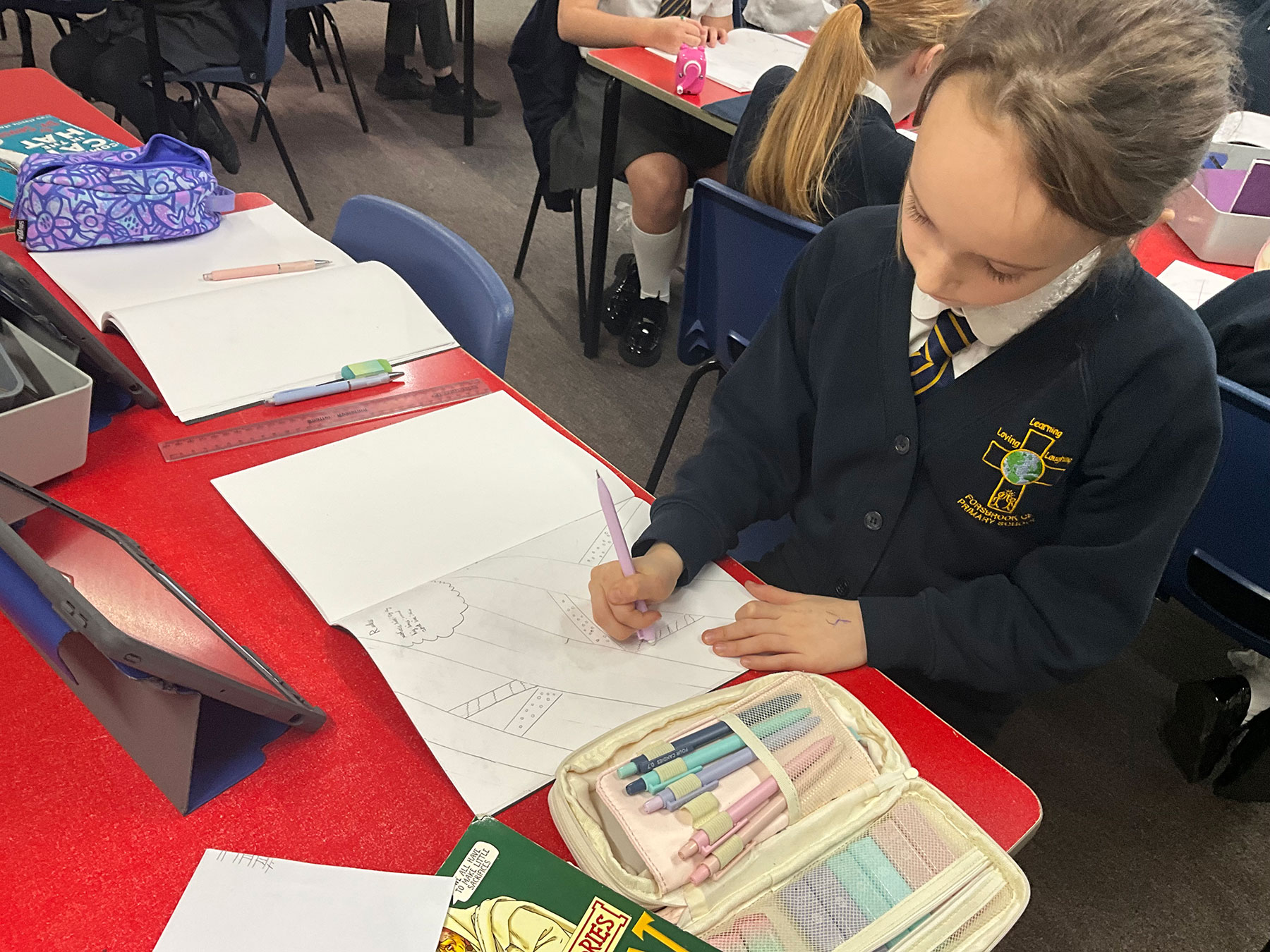 In English, we continued our work with the enchanting text Leon and the Place Between. The children immersed themselves in the wonder of the story, writing detailed diary entries from Leon’s perspective following his magical trip to the Place Between. This allowed them to explore descriptive language, convey emotions, and develop a strong sense of voice as they reflected on Leon’s extraordinary adventure.