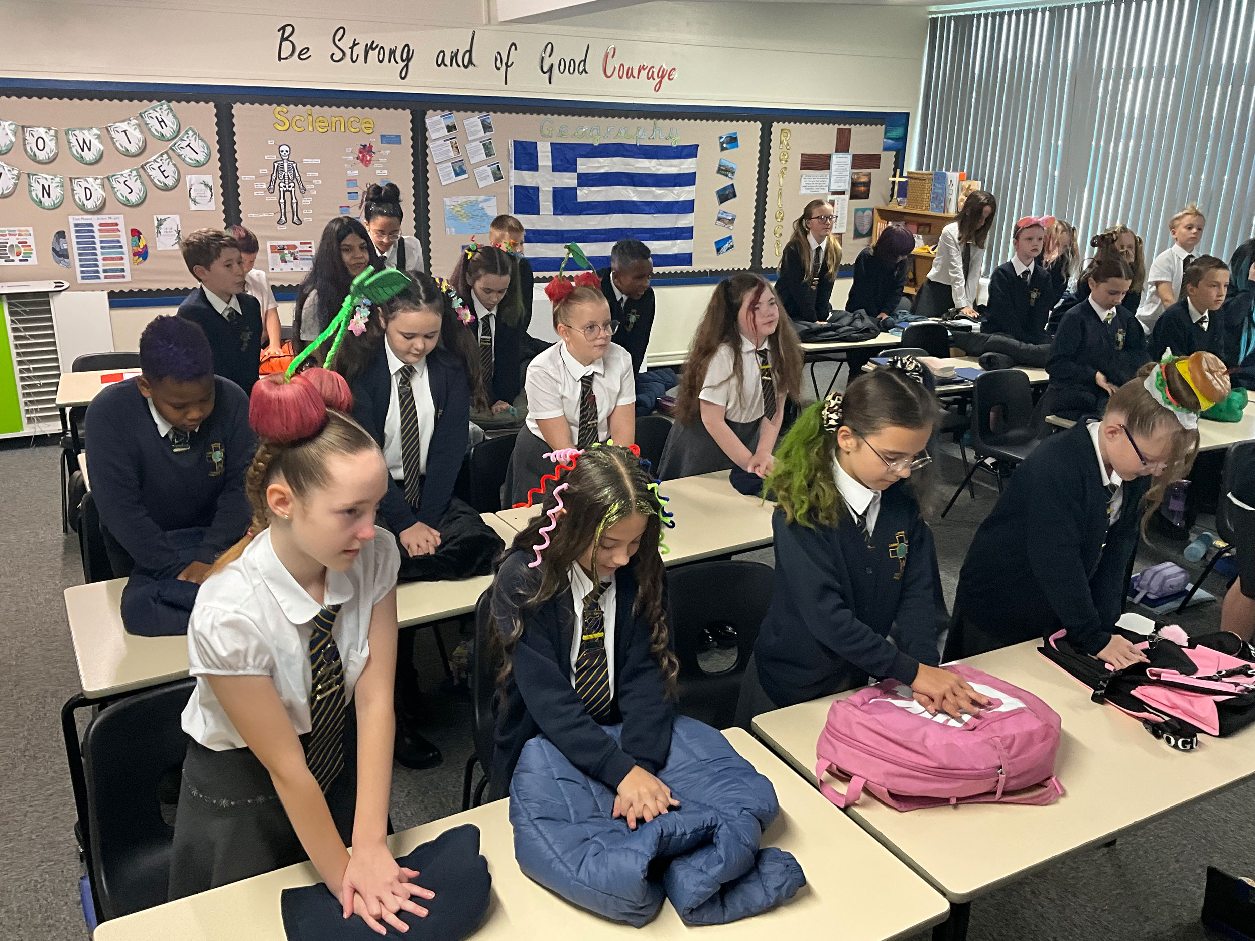 During the half-term, we also enjoyed a visit to the high school where we spent the morning as Year 7 students – using microscopes in Science and saws in D and T. We then participated in a CPR training course (on ‘crazy hair day’) where we learnt the importance of basic CPR and how it could help save someone’s life.